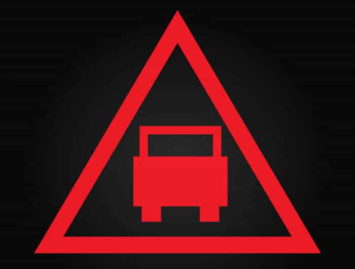 Esta luz de aviso significa que um veículo na frente está demasiado próximo ou que o seu automóvel está a aproximar-se demasiado depressa.