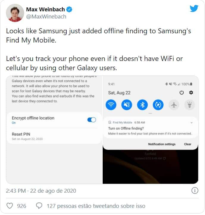 A localização 'offline' funciona com a ajuda de telemóveis ou tablets que estejam nas proximidades, uma vez que os aparelhos Samsung Galaxy que têm a opção podem procurar telemóveis do mesmo operador que estejam por perto. Ou seja, podem reportar a localização de um telefone, tablet, relógio digital e até fones sem fios que consigam identificar.